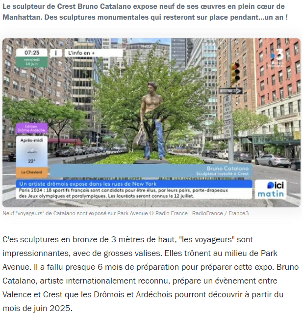 Le sculpteur de Crest Bruno Catalano expose neuf de ses œuvres en plein cœur de Manhattan. Des sculptures monumentales qui resteront sur place pendant...un an !