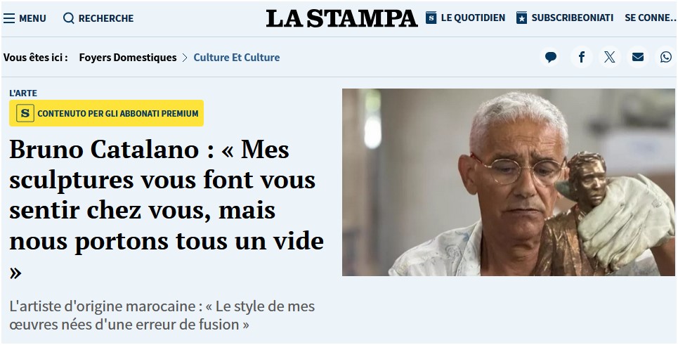 Je suis né au Maroc de parents d'origine italienne. Quand j'avais 15 ans, le mien a été contraint à l'exil à Marseille. C'était un traumatisme pour moi. J'ai fait beaucoup d'œuvres au cours de ces années, du marin à l'électricien, mais seule la passion pour l'art m'a aidé à surmonter le sentiment d'étonnement » pour parler, est Bruno Catalano, né en 1960, un artiste connu dans toute la région méditerranéenne, de Marseille à Gênes, de Montecarlo à Arcachon, pour ses sculptures monumentales qui, dans les lieux publics, parlent des migrants, des voyages, le chagrin. Son installation permanente est située en face du Musee Subaquatique à Marseille, il fait des expositions à Venise, Lucques et Paris, certaines de ses sculptures ont débarqué à Sydney pour l'exposition Sculpture au bord de la mer.